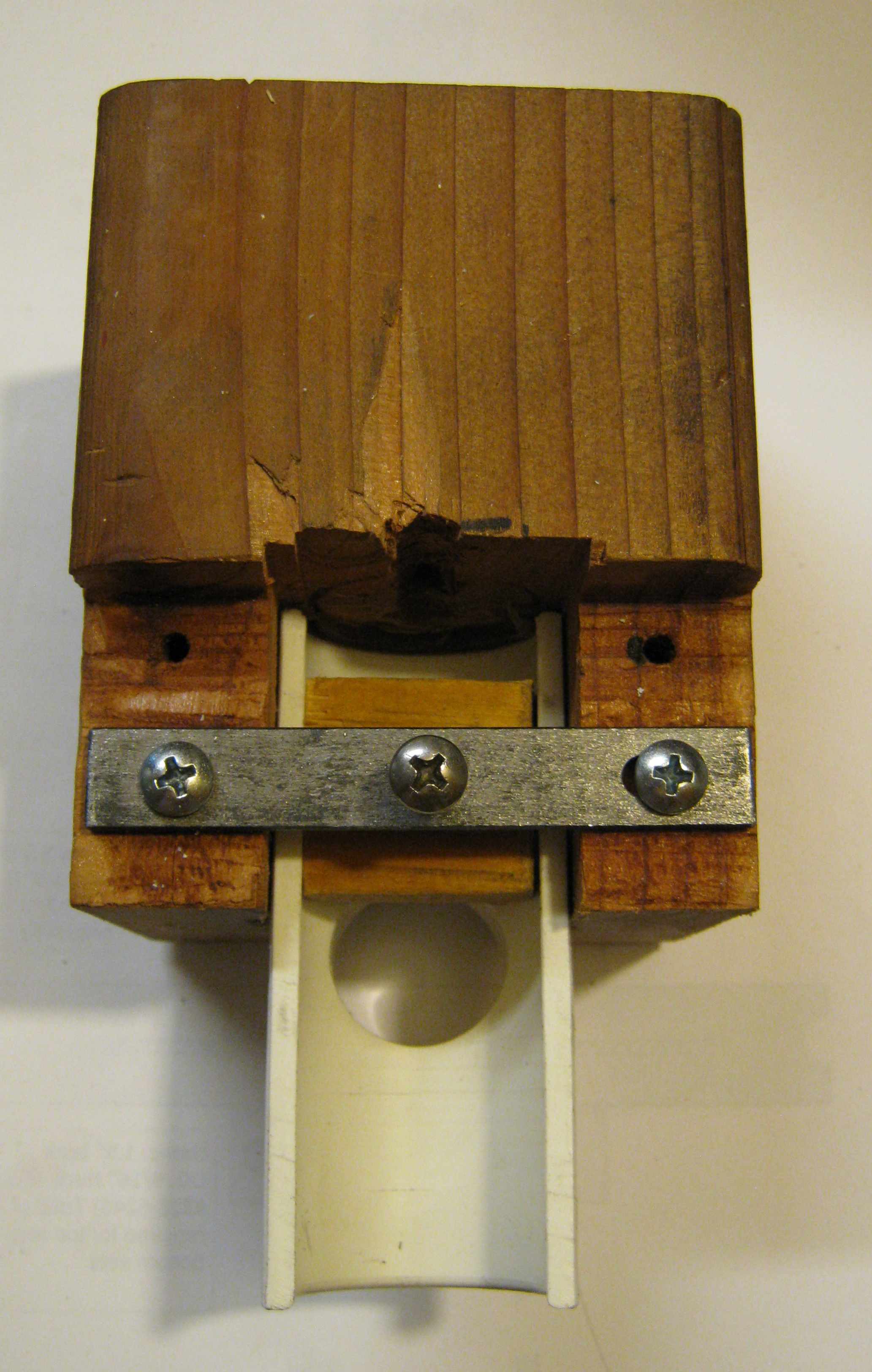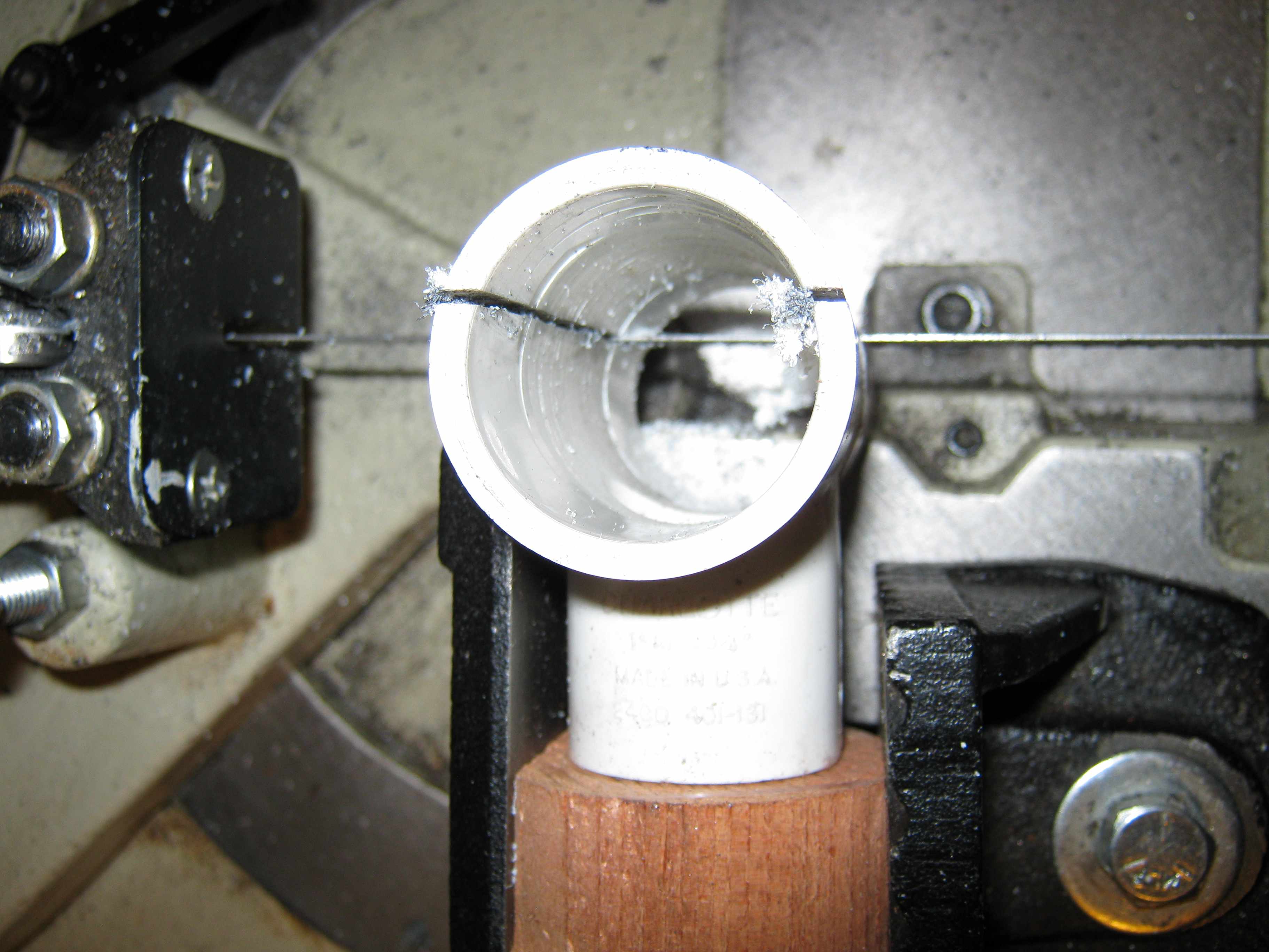 snap action when pressed onto the coulumn supports. | The transverse cut is made across the 3/4" stub and required a more complex fixture to hold it securely. |