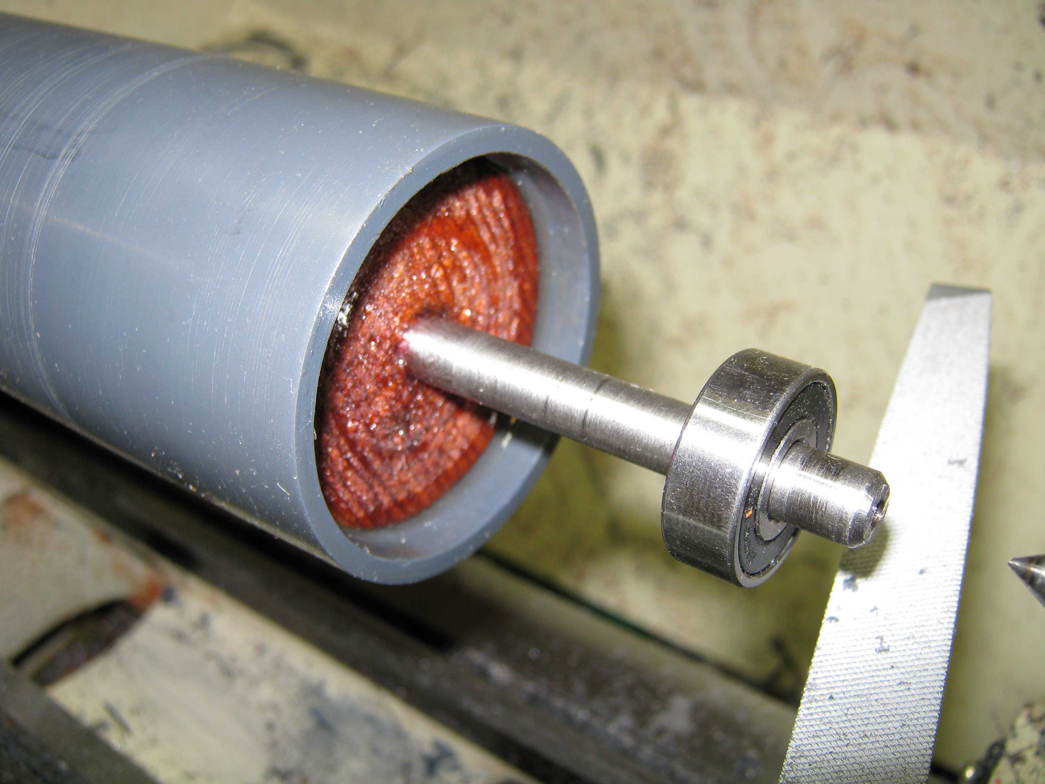 still enough material to make the core concentric with the axle. The axle must be used as the fiducial for concentricity. Finally, the core is smoothed with a file and then sanded for a close slip fit to the roller I.D (different for PVC and aluminum). |