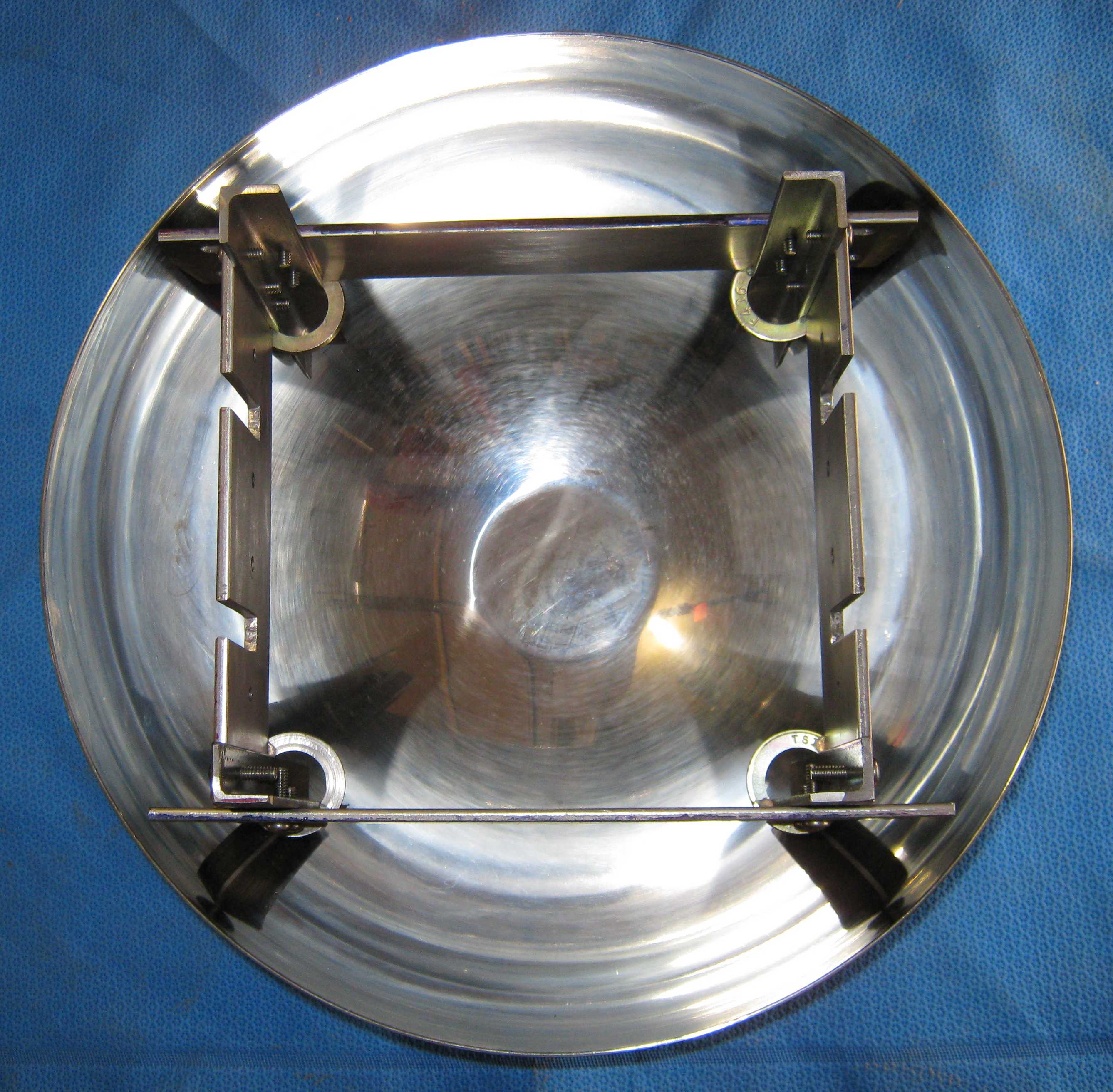 This is the upper fame before the pads are coated with Silicone I and set into the hemisphere. | This shows one of the four glued pads that are used to attach the hemisphere to the roller frame. |