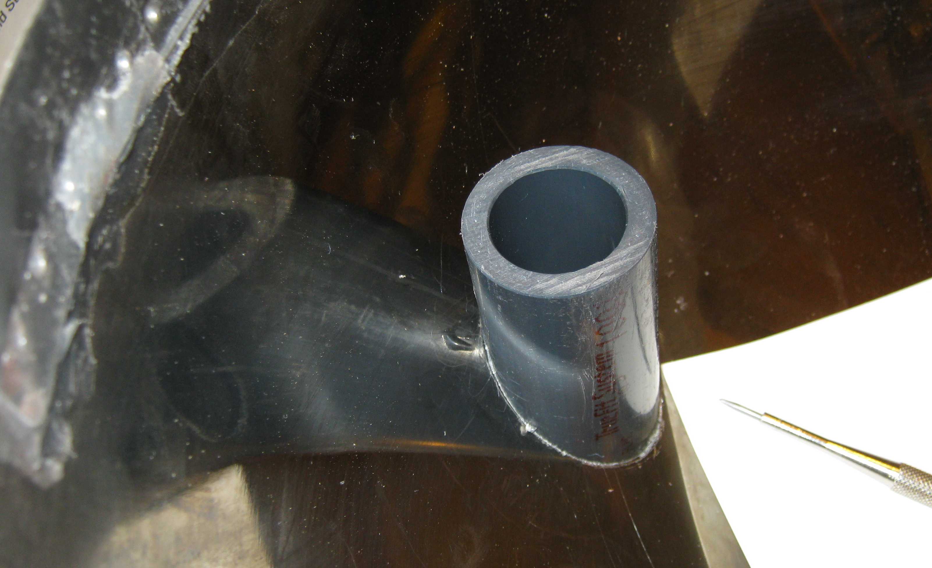short stub is cut from 1" ID Schedule 80 PVC pipe at an angle